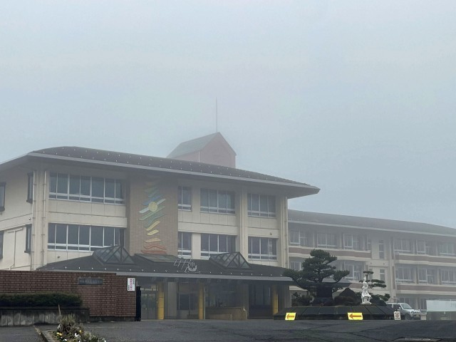 クリスマスの朝、校舎は深い霧に包まれ、静かな朝を迎えています。