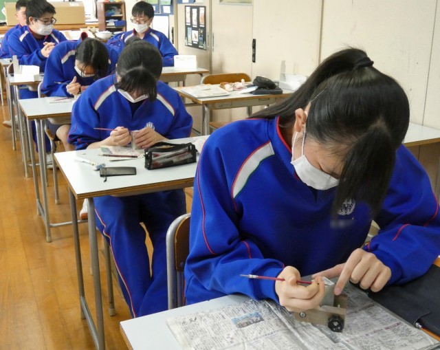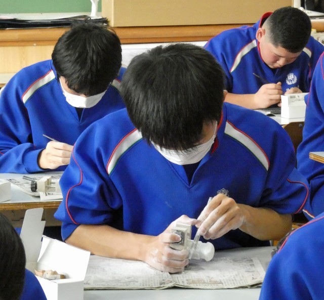 実際にさまざまな立体模型に触れながら、面の数や形を確認していました。実物を手に取ることで得られる発見に、生徒たちの目も輝いていました。