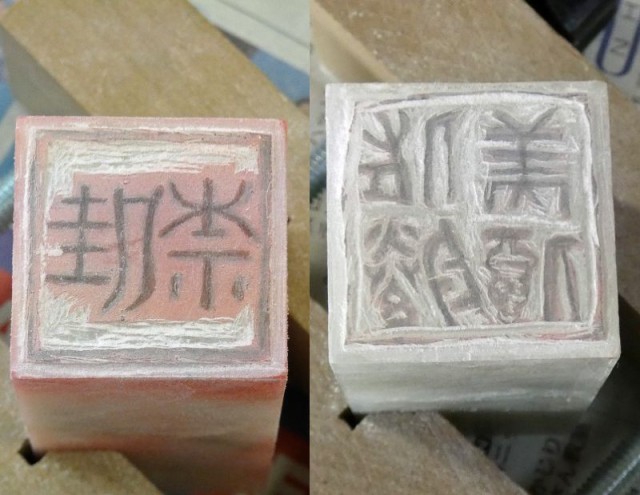 自分の作品と向き合い、一彫り一彫り慎重に刻んでいます。