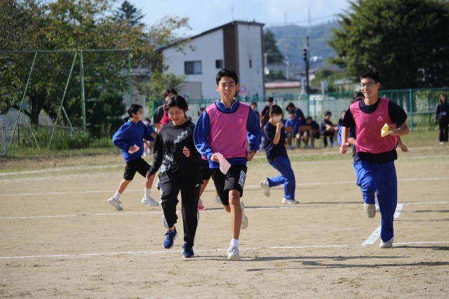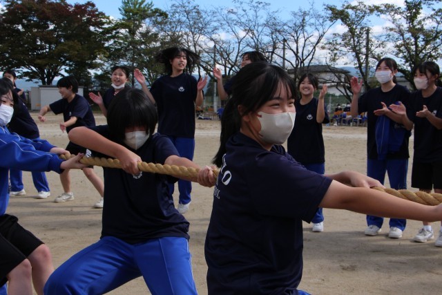 本日は晴天に恵まれ、午前中に体育祭が実施されました。借人競争、ドッヂボール、綱引き、選抜リレーを、学年の枠を超えて競いました。学年同志が男女で応援し合い、大盛況でした。絆を大きく深めた1日だったと思います。