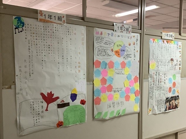 本日から、各学年の廊下に他の学年の新聞が掲示され、審査開始となりました。