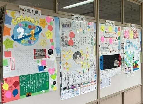 各学級で工夫を凝らした壁新聞を作り、全生徒、教職員の審査により、賞が決定されます。