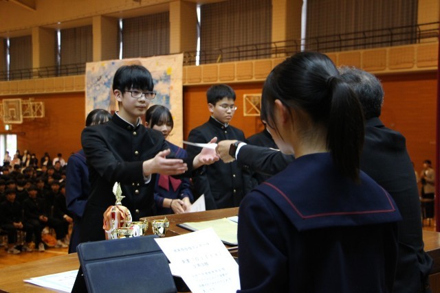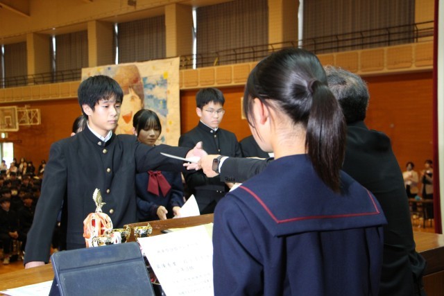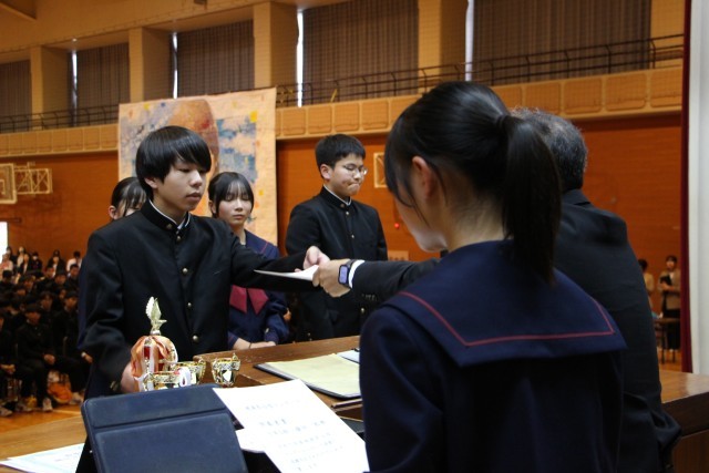 表彰です。表彰を受ける生徒達が、桃華祭をやり切った笑顔であふれていました。皆さん、お疲れ様でした!