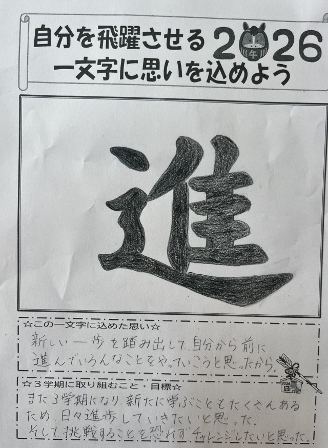 どんな思いをもって今年1年をすごいていきたいか、気持ちのこもった一文字ですね。