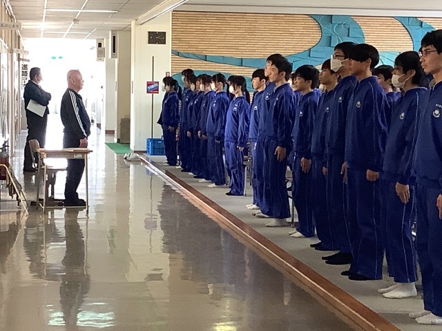 まずは「起立」「礼」「着席」の基本的な動きの練習を行いました。