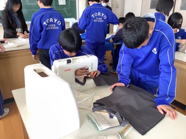2年生の家庭科で、バッグを製作しています。