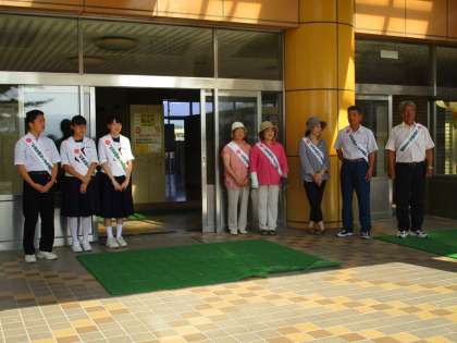 地域の「社会を明るくする運動」に本校生徒会役員も一緒になってあいさつを行っていました。