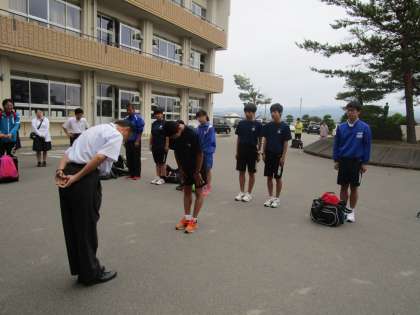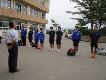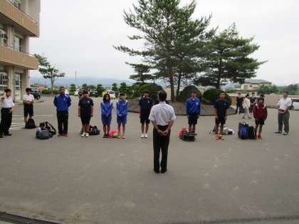 福島県中体連陸上大会が本日から3日間、いわき市陸上競技場で開催されます。出場する伊達地区の選手は校長会代表の梁川中学校の校長先生から頑張ってくるよう励ましをいただきました。