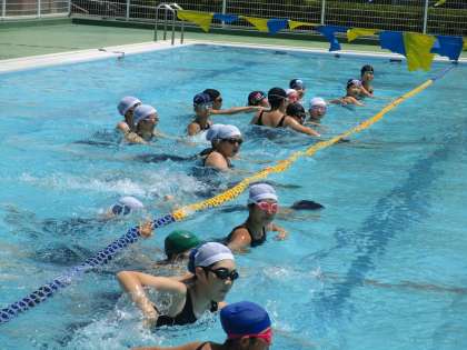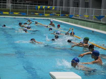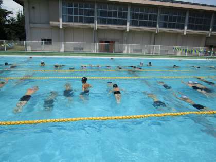 1年生は水泳が上手とのことです。水の中をイカのように泳いでいます。