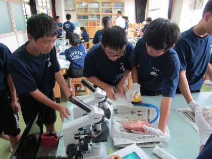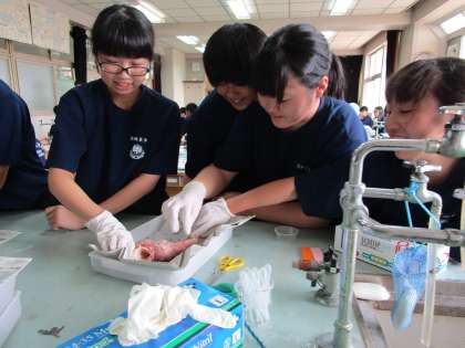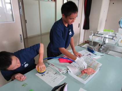 肺はかなりやわらかくてプニプニにしています。模型では知ることのできない貴重な授業です。一部、直視できない生徒もいたようです。