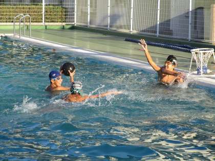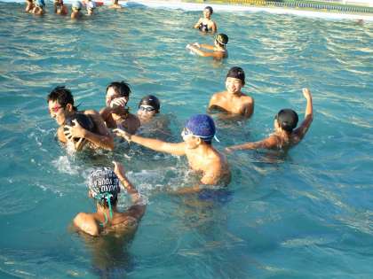 本日がプール使用最終日です。最終日を飾るように水球もどきの何かをやっています。