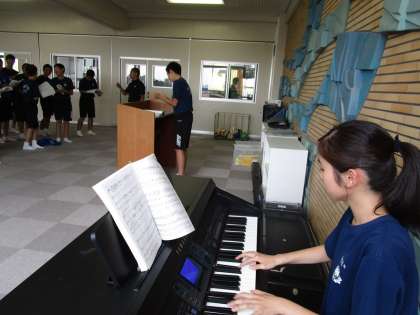 3年生のフロアは生徒たちが自主的に練習しています。