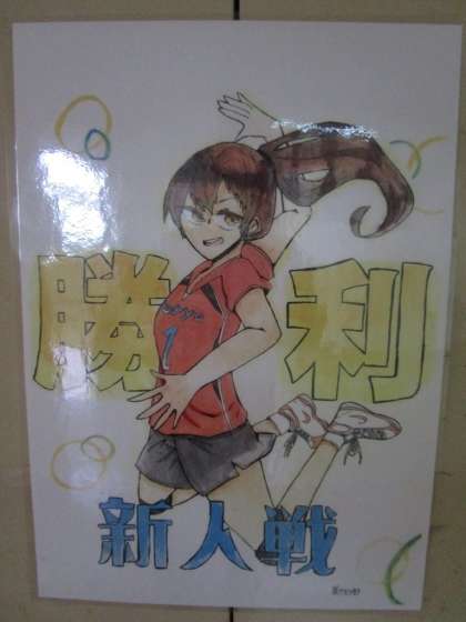美術部が新人戦での勝利を願って作成しました。玄関付近に掲示されています。