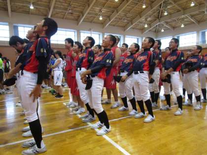 お礼の言葉、野球部はのけぞって校歌を歌っていました。
