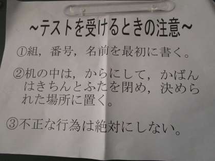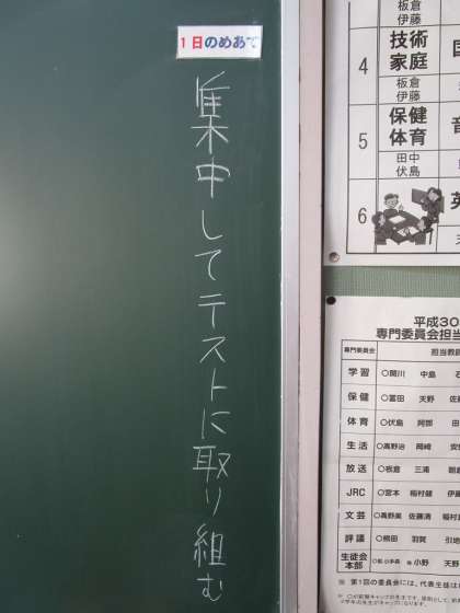 本日の学級のめあてもテストです。