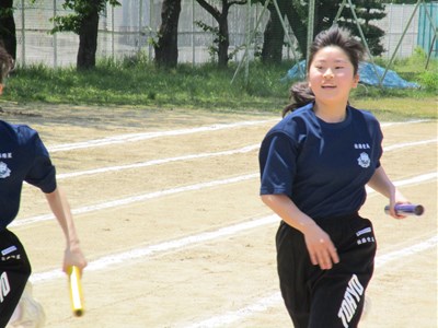 女子も全力で走っています。