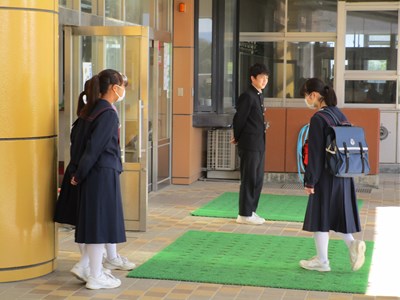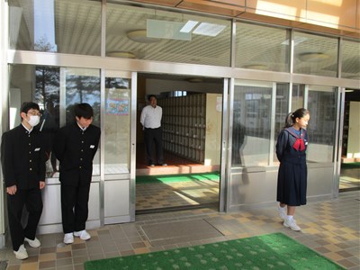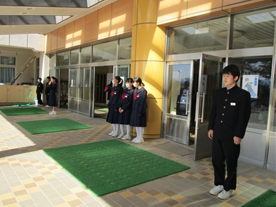 生活向上委員会では毎朝あいさつ運動を行っています。