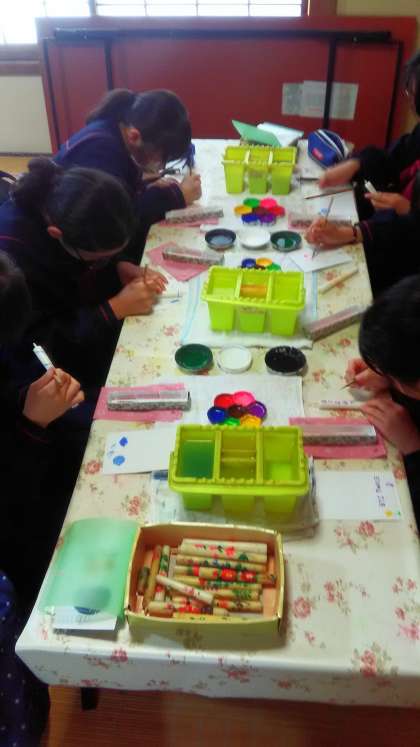 ほしばん絵ろうそく店で絵ろうそくの絵付けを体験しました。