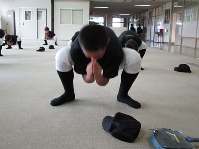 新人戦に向けて全員でお祈りしているのでしょうか?