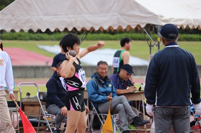 共通男子砲丸投げにも出場しています。フォームを確かめています。
