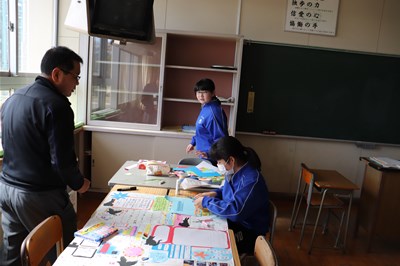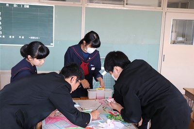 この教室では新聞の制作です。