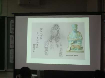 (スライドに松尾芭蕉が医王寺で詠んだ俳句もありました)
