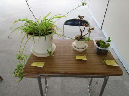 3年生のホールにも3つの植物が置かれました。 ぜひ、観察しよう。