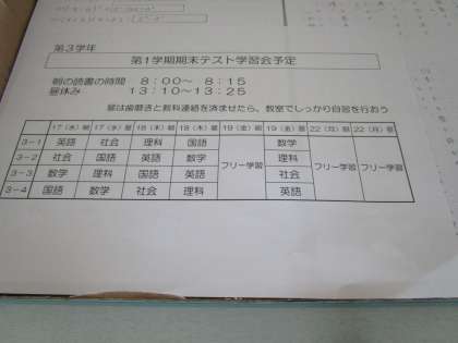明日から、朝の時間と昼休みは期末テストに向けた学習会が始まります。