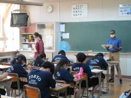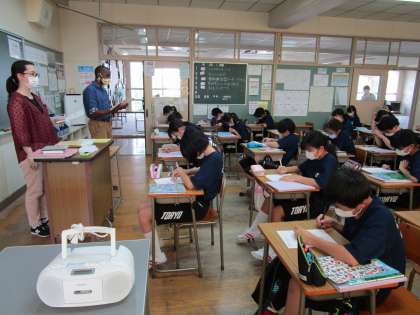 普段ならCDを聴くリスニングテストですが、今日はALTの先生からの出題です。