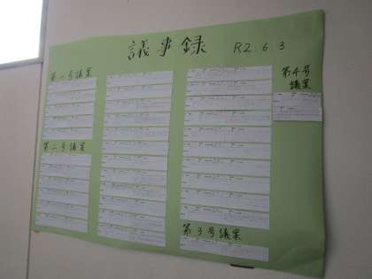 先日放送で行われた生徒会総会の際に各クラスから出された質問に対して、生徒会本部から回答がありました。昇降口の階段に掲示されています。