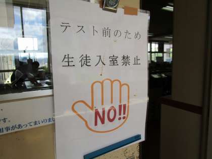 来週月曜日は1学期期末テスト。職員室は生徒入室禁止になりました。