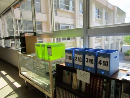 配付物は学級日誌等は、廊下のボックスで受け取ります。