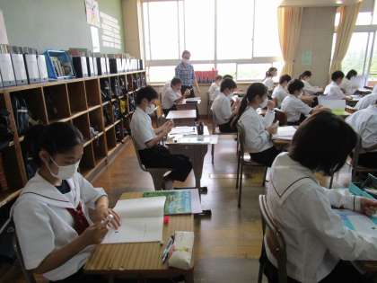 一般動詞のlikeやplayについて学んで、文を日本語に訳していました。