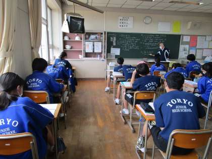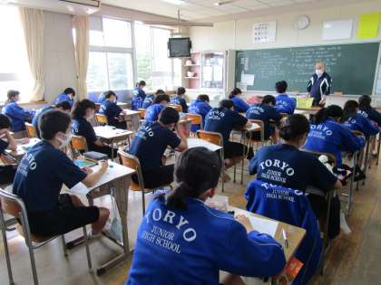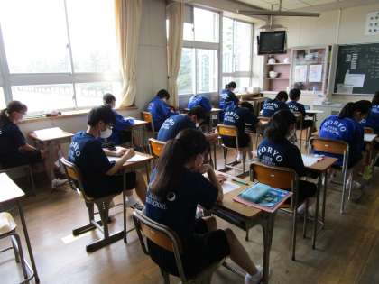 英語もテストの解説です。3年生は高校入試も意識して、今の学習に集中。