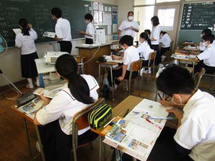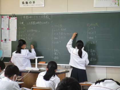 仏教、キリスト教、イスラム教の三大宗教の特色を調べ、協力して黒板にまとめていきました。