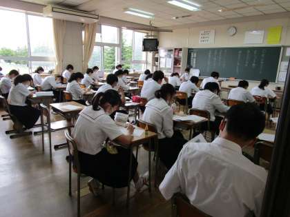 どの学級も朝自首の時間は、漢字の事前テストや練習です。合格を目指してがんばっています。