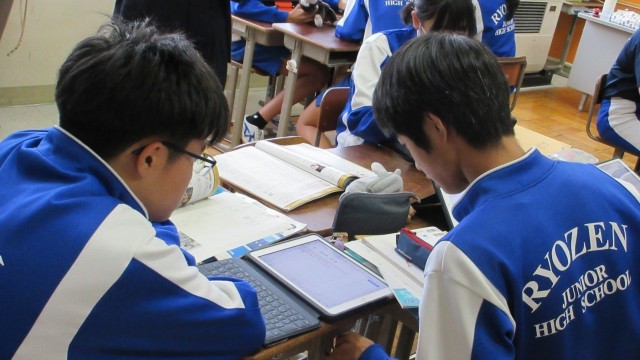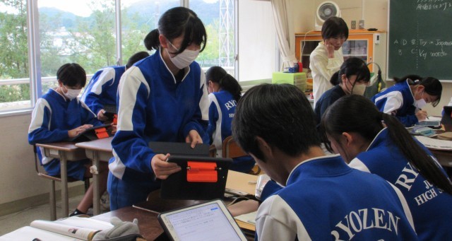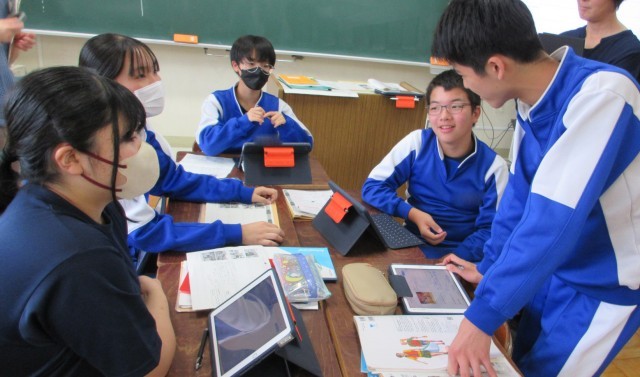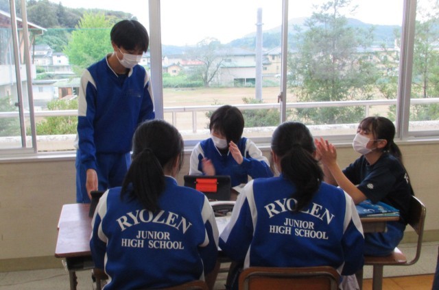 自分で考えた英文をグループの中で発表し、それに対して意見をもらいます。