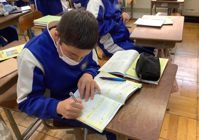学習に励む1年生