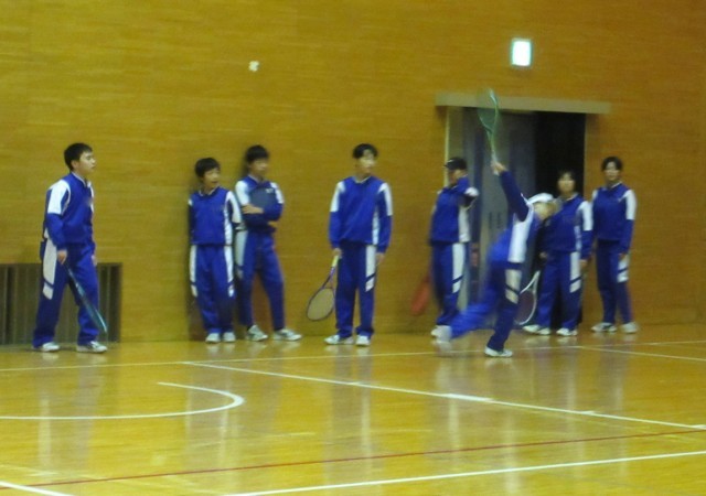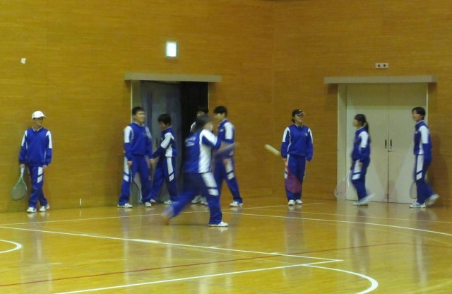 普段、外で活動している部も含め、冬の期間は体育館を順番に使用して活動しています。こちらは男女テニス部です。