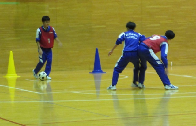 こちらはサッカー部です。県大会での悔しさをバネに、一生懸命練習に励んでいます。