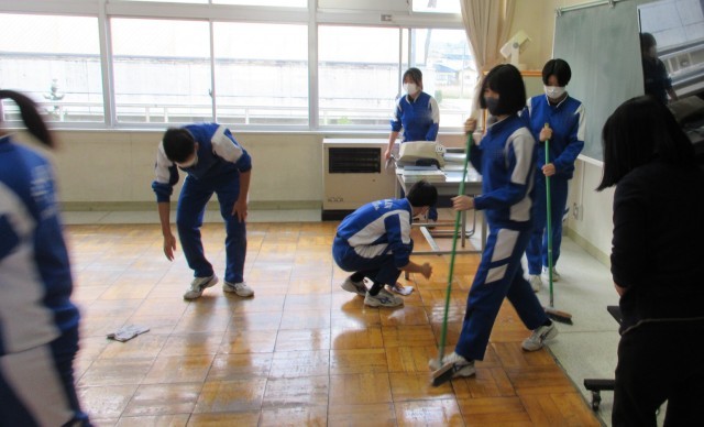 始業式後、朝のうちに清掃を行いました。どの清掃区域も、水が冷たくても、人が見ていなくても、黙々と作業を進める姿が立派でした。