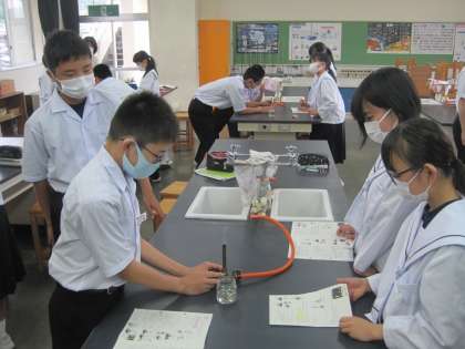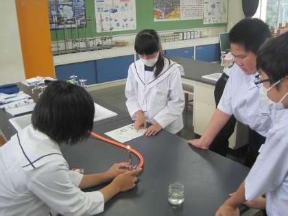 今日は,ガスバーナーの使い方を実際に行いました。マッチをつけるところから不安そうに…