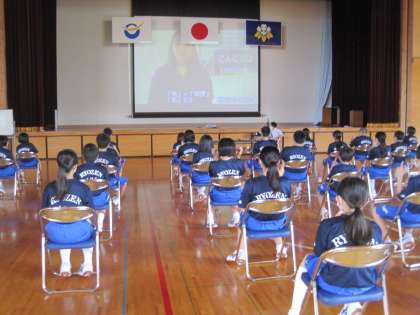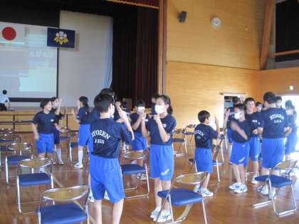 1年生は,体育館で福祉体験学習をしています。今年度は,福祉施設を訪問することができませんでしたので,学校内でできることをしています。手話について学び,友人どうし手話でコミュニケーションをとっています。