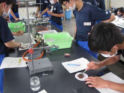 反応後の物質をこすると,金属光沢が見られ,銅を取り出すことができました。