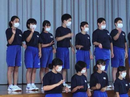 昨日覚えた手話をグループで確認し、