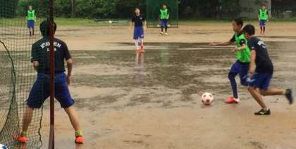 あいにくの雨模様ではありますが、13:00より予定どおり交流試合開始!