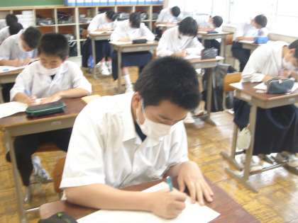予想問題からの50問を15分間で行いました。全員が満点をとってほしいなあ。