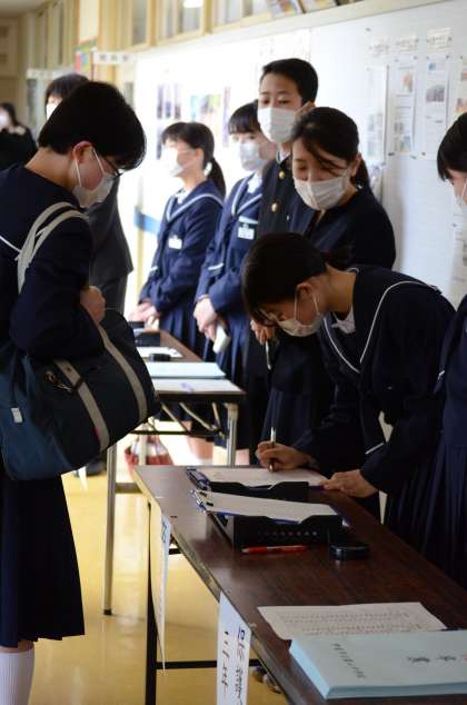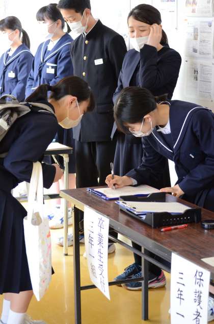3年生は、ゆっくり登校・・・ 受付の1,2年生もご苦労様。