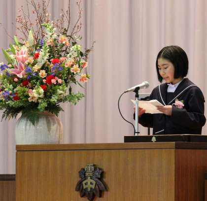義務教育で身に付けたさまざまな『力』をいかんなく発揮し表現した すばらしい答辞でした。