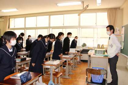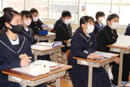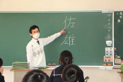 理科の初授業。先生の自己紹介での、名前についての話に興味を感じた様子でした。